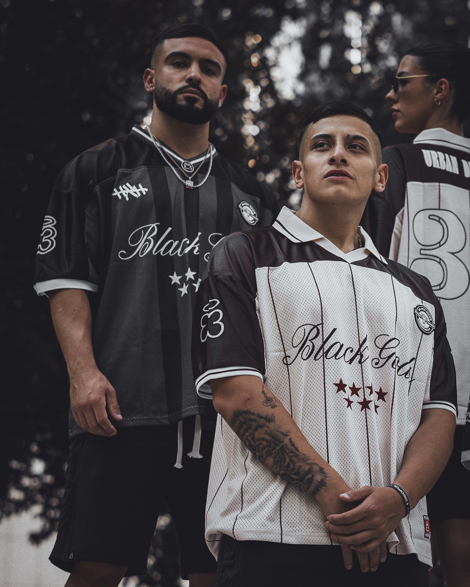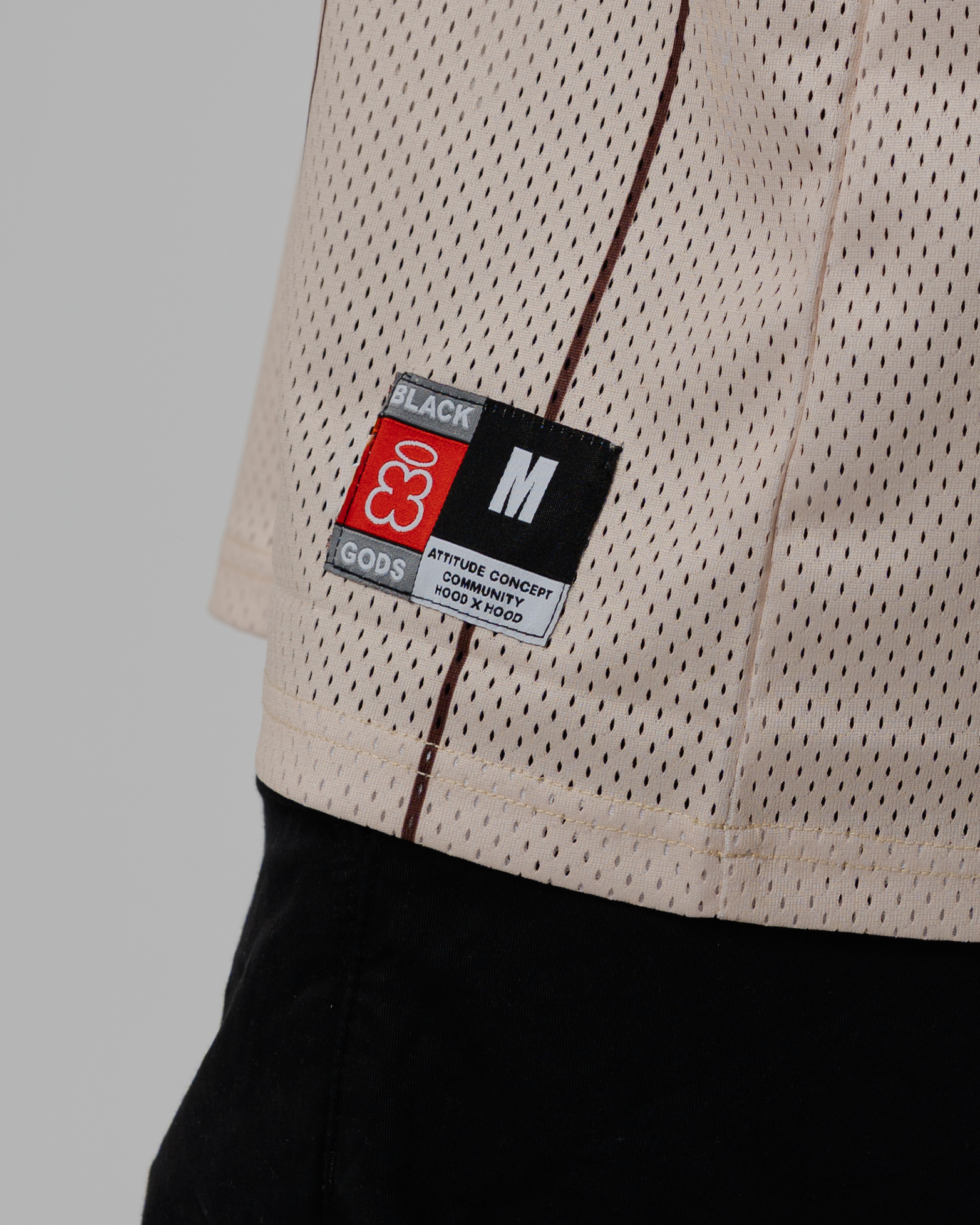 Colores: retro camel y dark rum. logo frontal en negro y blanco