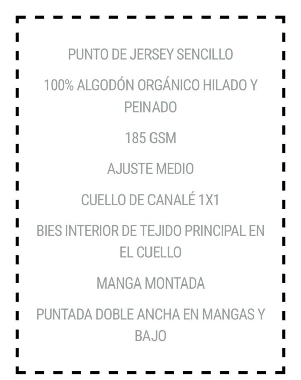 Material: 100% algodón orgánico hilado y peinado. 185 GSM.