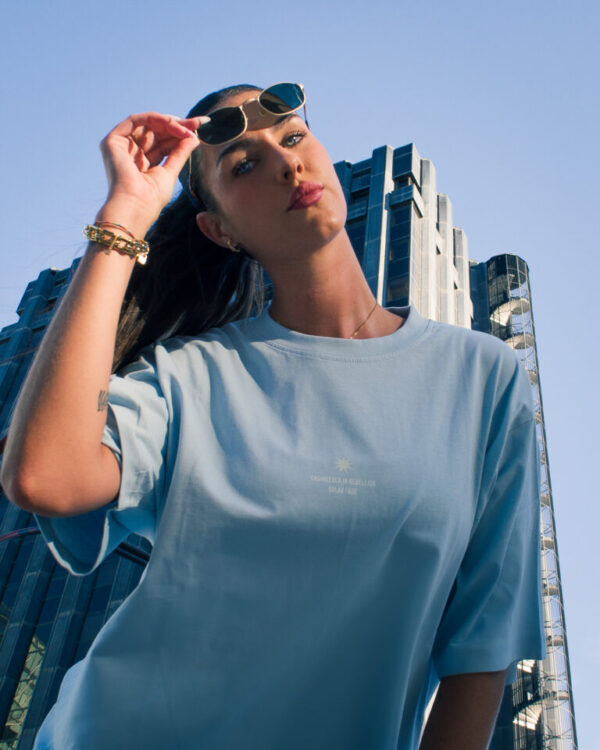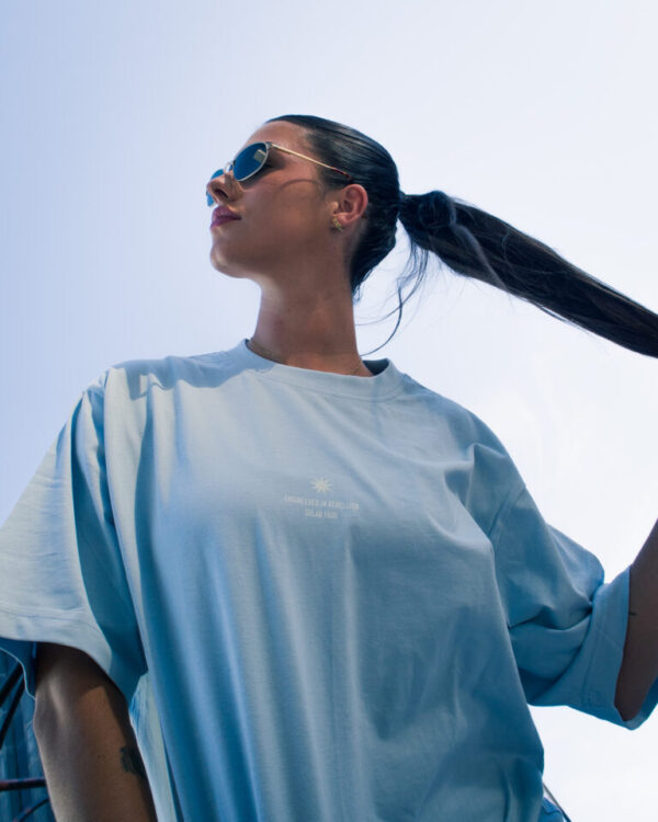 Material: 100% algodón orgánico hilado y peinado, 185 gsm, oversize.
